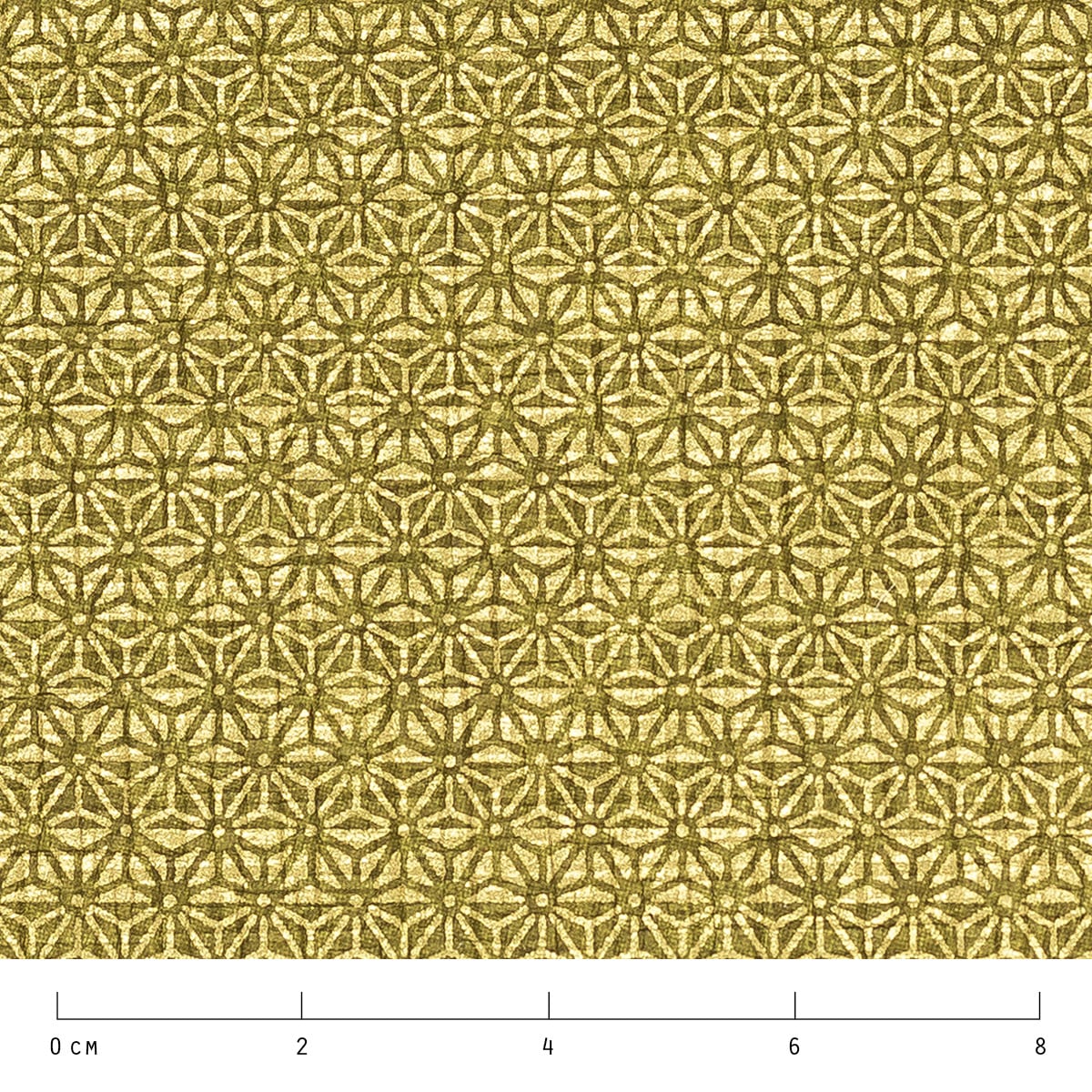 地色は渋めのうぐいす色です。名前にある麻の葉は成長が早くまっすぐ伸びることから縁起の良い柄とされています。